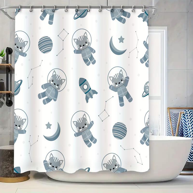 Stylish Cartoon Astronaut Cat Print Bathroom Curtain Set Waterproof Shower Curtain for Kids Bathrooms Decor Home Accessories