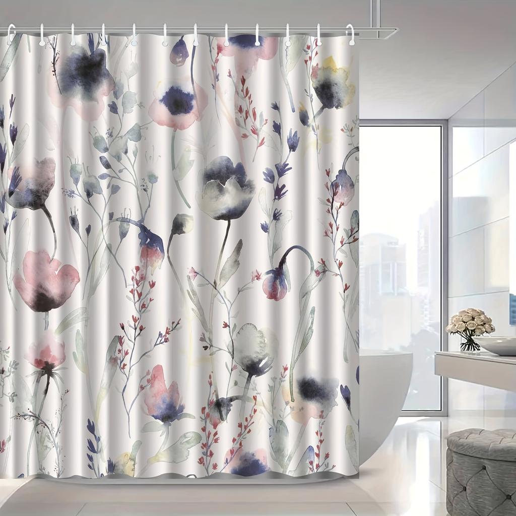 Elegant Floral Shower Curtain, High-End & Anti-Fog, Vibrant Pink/Blue/Purple/Green Flowers, Hooks Included, Bath Decor