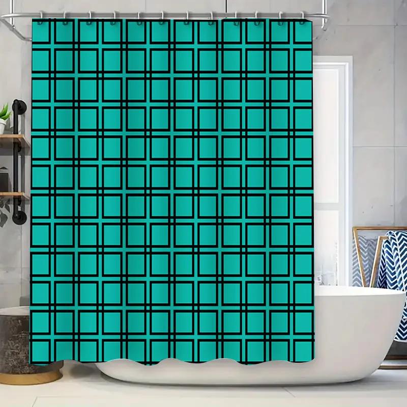 Green Checkered Shower Curtain Waterproof Home Decor Bath Mat for Bathroom Decoration Blue Green Large Grids Pattern (180x240cm)