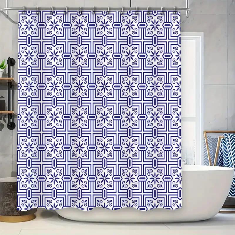 Blue White Tile Pattern Shower Curtain Waterproof Home Decor Bathroom Decoration 180x240cm TPU Material High Density Printing