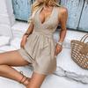 New Women's Solid Color Sleeveless Waist Tie Waist Jumpsuit, Casual Simple Vacation Jumpsuit For Petite