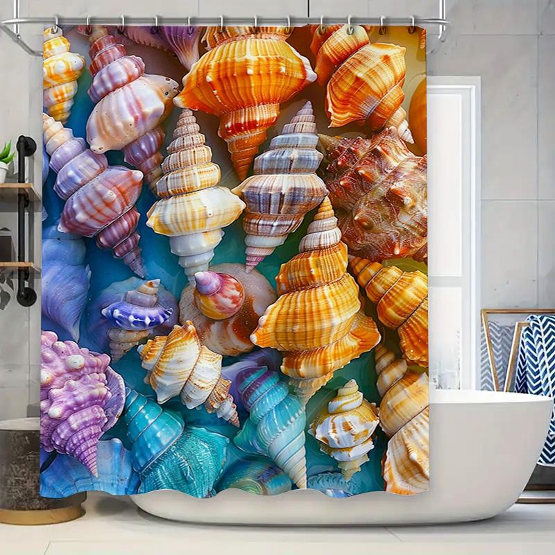 Beach Vibes Shower CurtainVibrant Seashell Print for Your Bathroom Decor