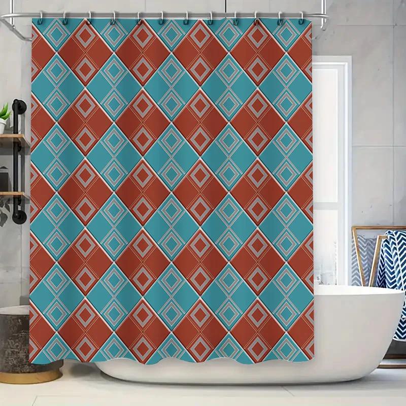 Pink Black Checkered Shower Curtain Bathroom Decor Waterproof Fabric Home Decoration Privacy Protection