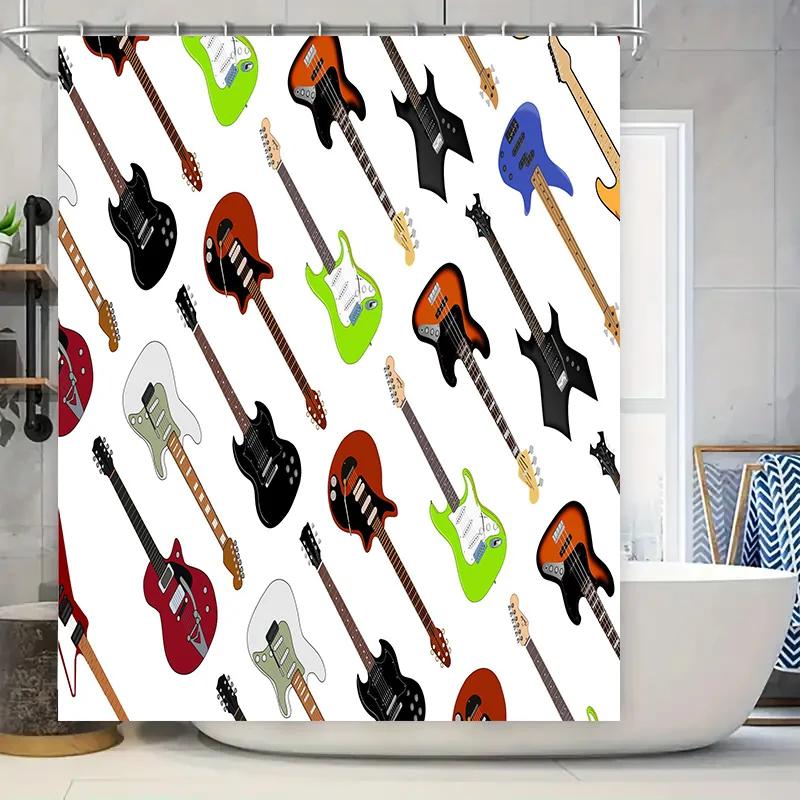 Rock Out with Your Guitars: Electric Guitar Pattern Shower Curtain Music Lover's Decor for Bathroom or Kitchen