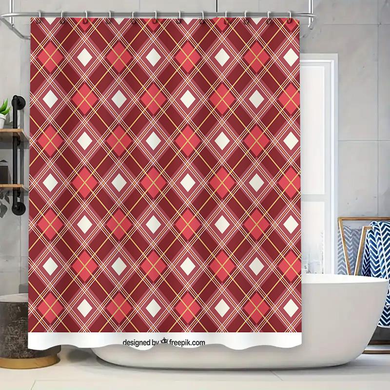 Black Red White Plaid Shower Curtain Waterproof Printed Fabric Bathroom Decor Modern Style with Rod Set
