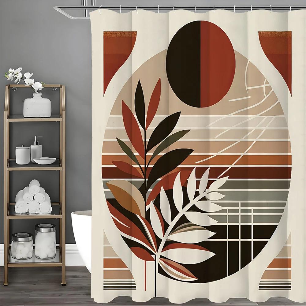 Modern Simple Sun Leaf Shower Curtain, Bathroom Decorative Shower Curtain, Waterproof Shower Curtain with Hooks