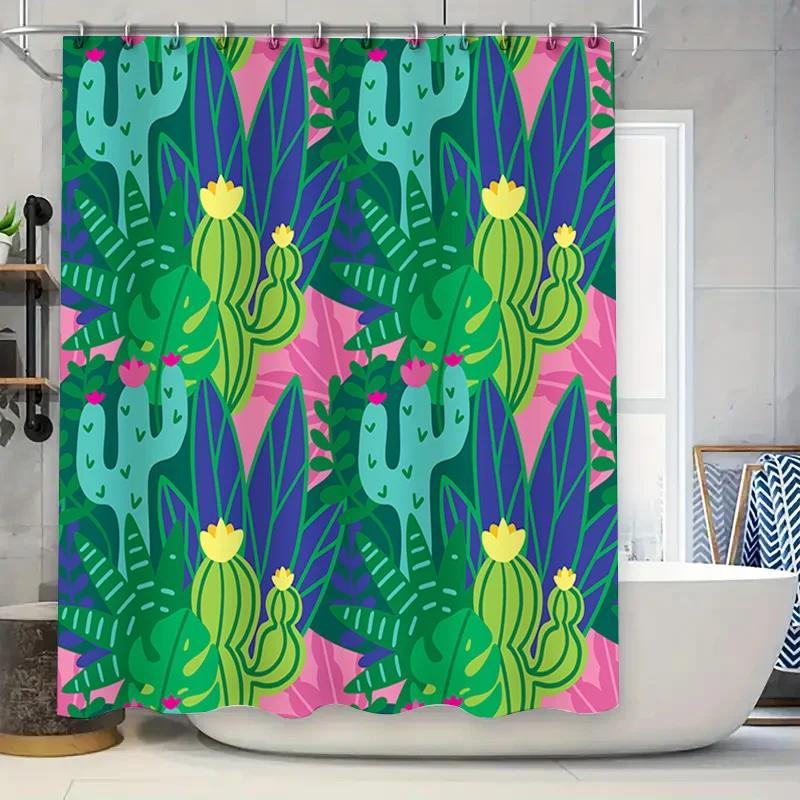 Green Cactus Shower Curtain Waterproof Fabric with Tropical Plant Pattern for Bathroom Decor Brighten Up Your Space Today