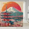 Boys Girls Japanese-Style Shower Curtain Red Cherry Bath Curtain Mount Fuji Bathroom Accessories Teens Bedroom Decor