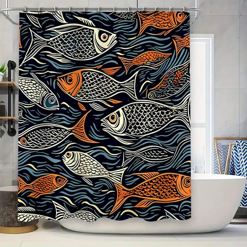 Colorful Fish Pattern Shower Curtain Navy Blue Orange Decorative Waterproof Fabric Bath Liner for Home Bathroom Accessory Decora
