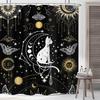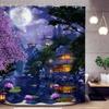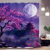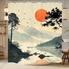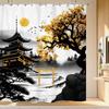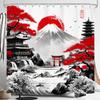 Japanese Cherry Blossom Shower Curtain Watercolor Black Red Floral Asian Chinese Mountain Sun Anime Fabric Waterproof
