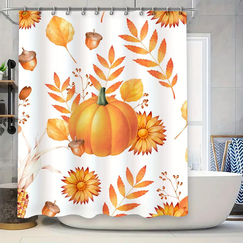 Autumn Leaves Pumpkin Sunflower Shower Curtain Waterproof Bathroom Decor