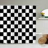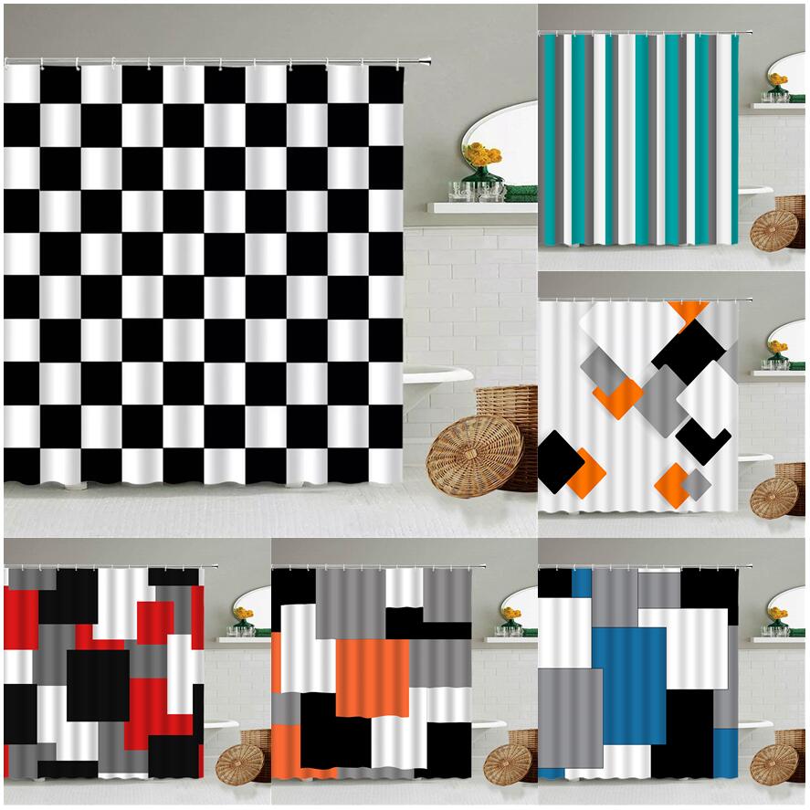 Black and White Checkered Wave Stripe Geometric Shower Curtain Bathroom Waterproof Polyester Curtain with Hook Home Decor