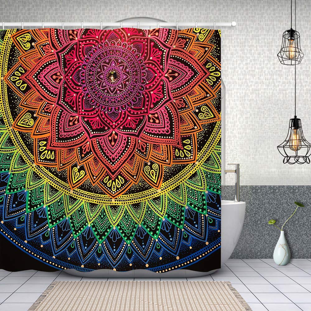 Boho Floral Shower Curtain for Bathroom,Paisley Mandala Shower Curtains,Colorful Bathroom Curtain,Durable Waterproof Bath Screen