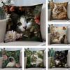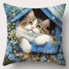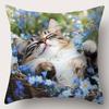 Cute Cat Prints On Blue Flower Decorative Cushions Polyester pillowcase, sofa decorative cushion cov Headboard Pillow