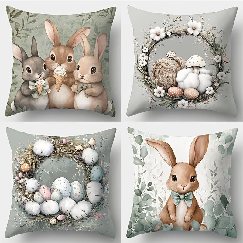 Cute Bunny Patterned Cushion Covers Easter Decorations Polyester pillowcase, sofa decorative cushion cov Headboard Pillow