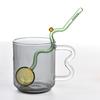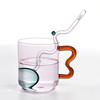 Creative Color Glass Water Cup with Handle Breakfast Milk Cup Heat Resistant High Borosilicate Cup Drinking Glasses Spoon Cups
