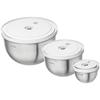 BRA Efficient - Lot de 4 Bols en Acier Inoxydable 18/10 12-16-20-24 cm 0,4 L, Base en Silicone, Couvercles Inclus