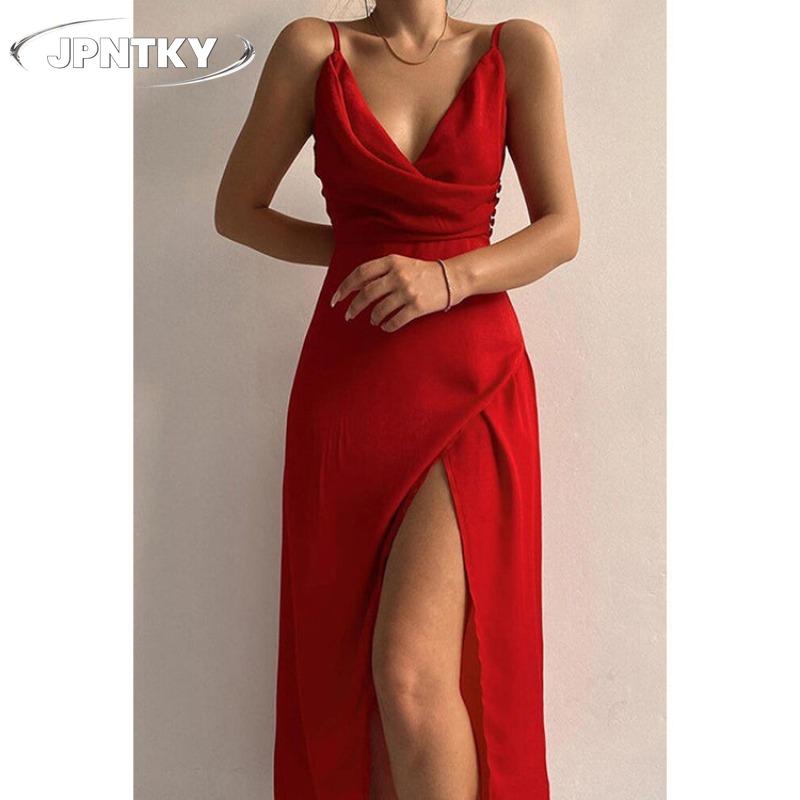 JPNTKYWomen's Fashion Summer Spring Solid Color Print Sleeveless V-Neck Casual Dresses