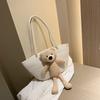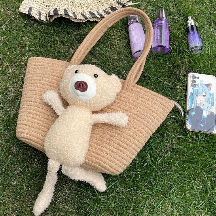 Woven Bag Large Capacity Ethnic Style Plush Bear Cute Straw Bag Shoulder Bag Travel Beach Bag
