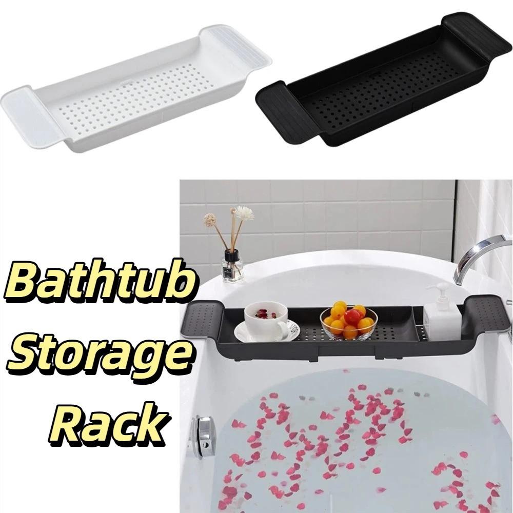 Built-in Phone Holder Extendable Bathtub Rack Over Bath Tub Shelf Spa Experience