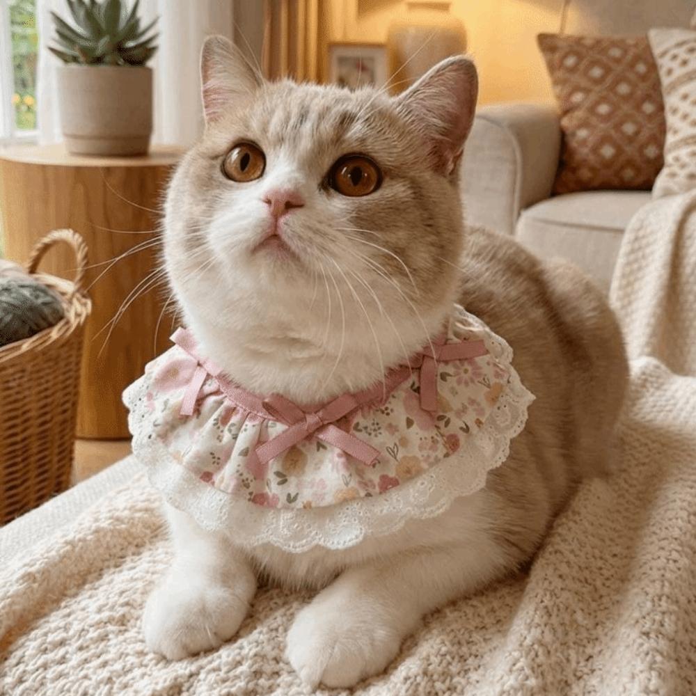Adjustable Pet Cat Scarfs Lace Floral Bows Cat Drool Towel Stylish Cat Clothes Photo Shoots