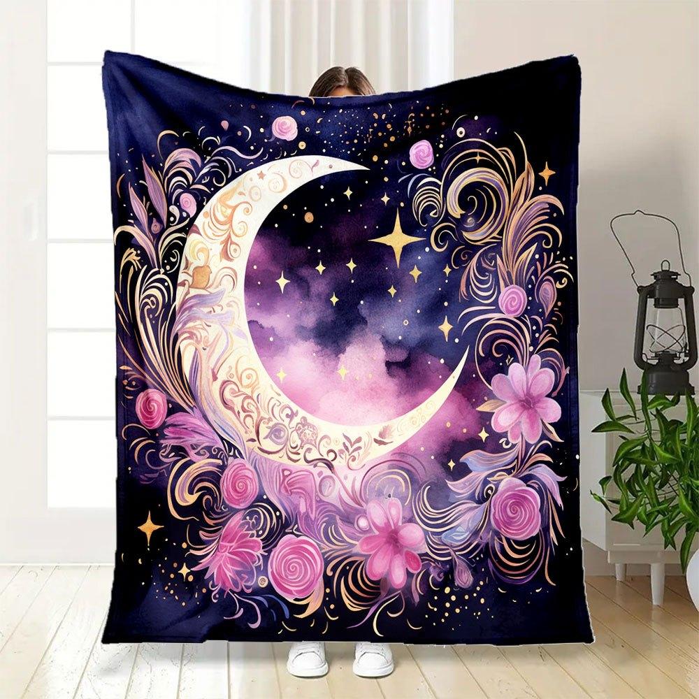 "Enchanted Celestial Crescent Moon Wall Art Print"Blanket Flannel Throw Blanket for Sofa, Bed, Travel, Camping, Office