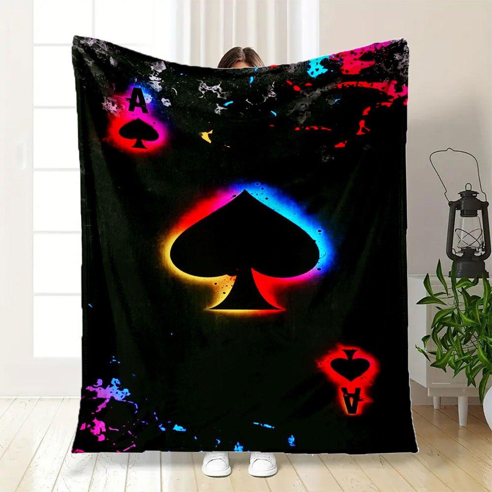 "Neon Spade Playing Card Art Print"Blanket Flannel Throw Blanket for Sofa, Bed, Travel, Camping, Office