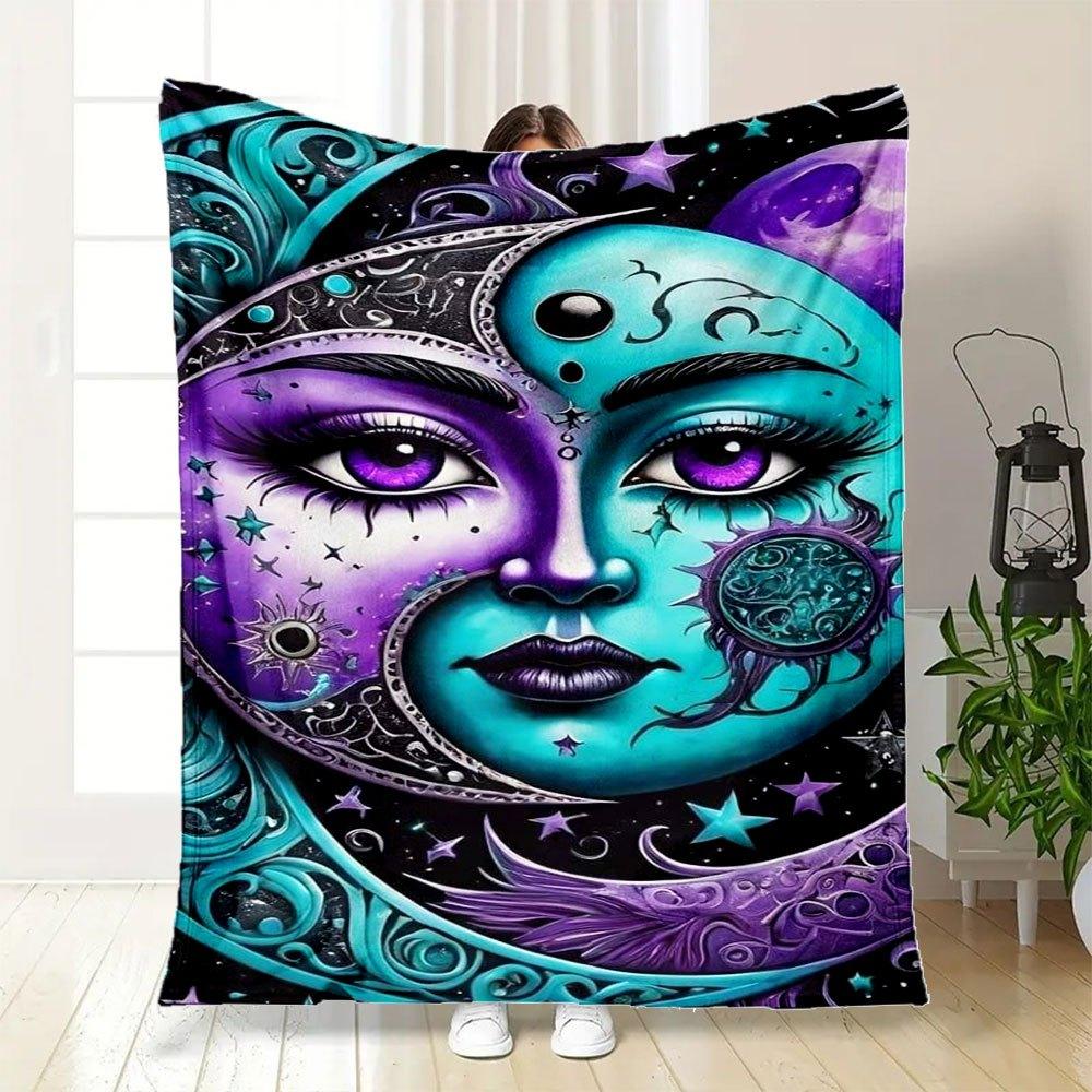 "Starry Night Moon Face Art Print - Celestial Wall Decor"Blanket Flannel Throw Blanket for Sofa, Bed, Travel, Camping, Office