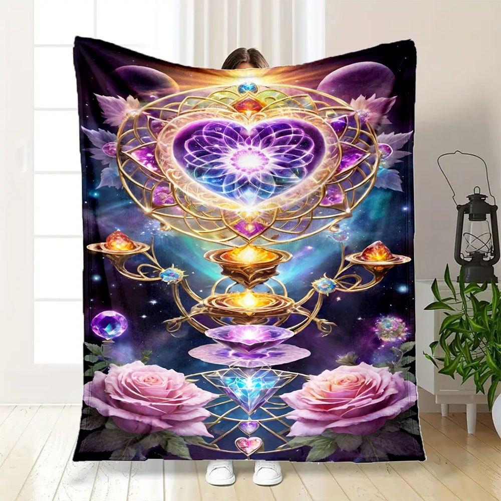 "Enchanted Mandala Crystal Heart Decor"Blanket Flannel Throw Blanket for Sofa, Bed, Travel, Camping, Office