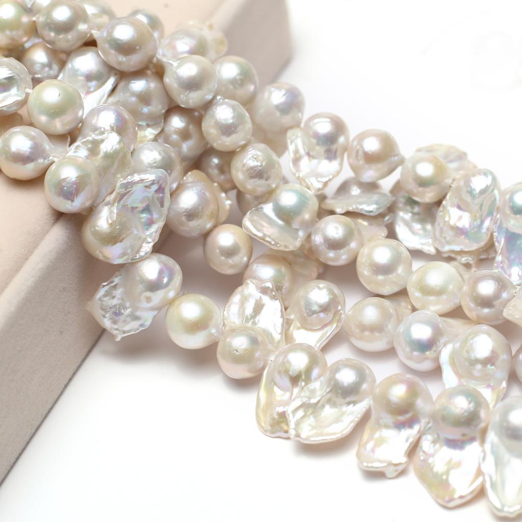 Baroque Handmade Fishtail Pearl 15-23mm, White Natural Freshwater Pearls Beads for Jewelry Making DIY Necklace Accessories, Mother's Day Crafts 36cm