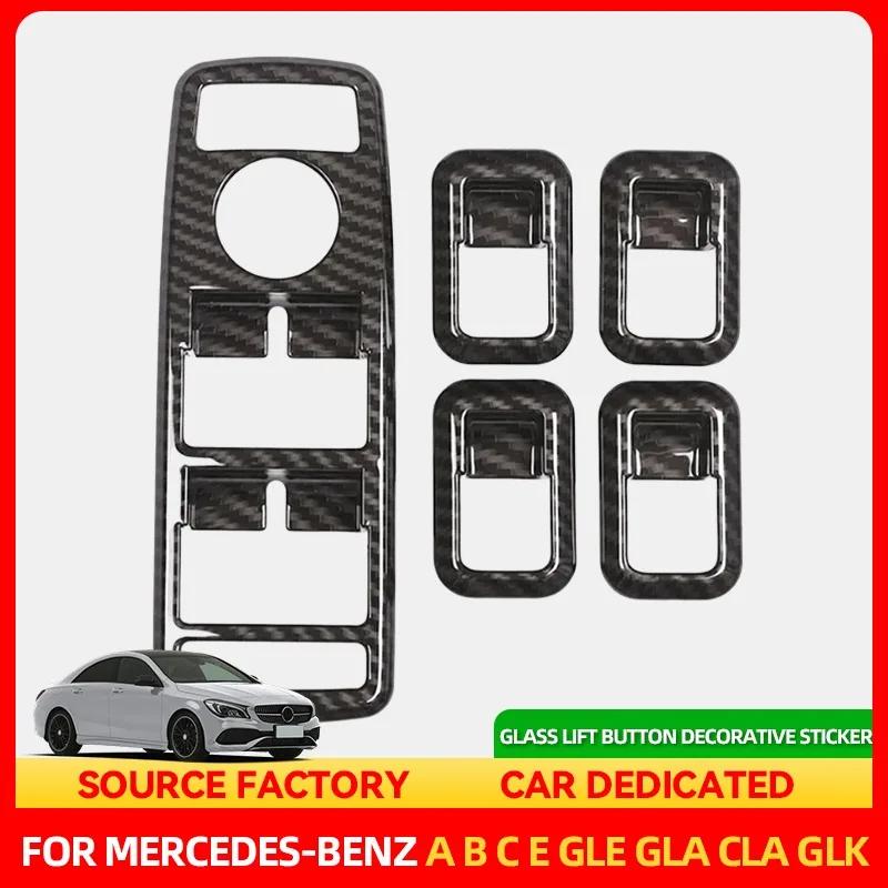 Hot Interior Mouldings Carbon Fiber Style Car Window Lift Button Frame Sticker For Mercedes Benz A B C E GLE GLA CLA GLK Class W