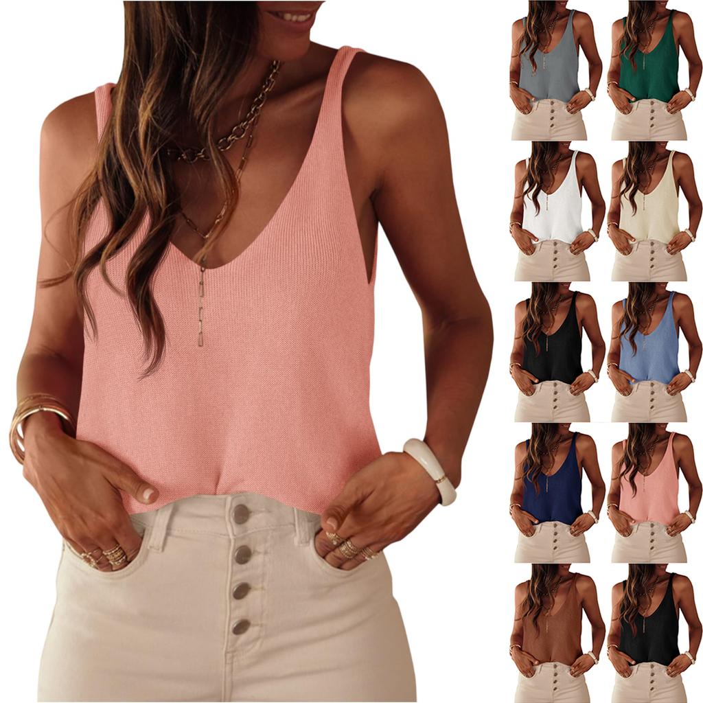 Womens Knit Sweater Tank Tops Casual Summer V Neck Loose Fit Sleeveless Camisole Shirts