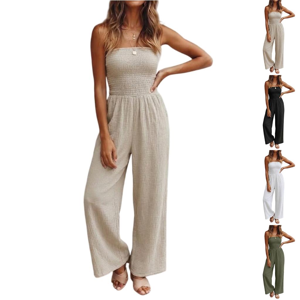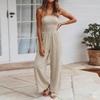 Women's Fashion Wide-Leg Color Strapless Pocket Waist-cinching Jumpsuit