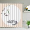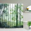 Chinese Style Ink painting Bamboo Landscape Shower Curtain Flower Bird Scenery Bathroom Waterproof Cloth Bath Curtains With Hook