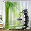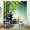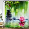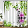 Zen Green Bamboo Shower Curtains Purple Orchid Butterfly Flowers Plants Black Stone Spa Nature Scenery Fabric Bathroom Decor Set