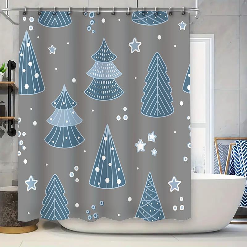 Christmas Shower Curtain Christmas Tree Decorative Print Waterproof Bathroom Rug Home Decoration 72 Inch Long Blue Gray Shower C