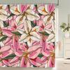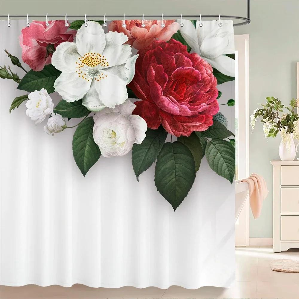 1Pcs Elegant Rose Flower Printed Fabric Waterproof Shower Curtain, Romantic and Fashionable Rose Bathroom Decoration, with Hooks