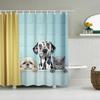 Funny Little Cat Dog Bathing Shower Curtain Cartoon Animals Printed Bathroom Curtain Set Waterproof Polyester Fabric Bath Screen