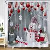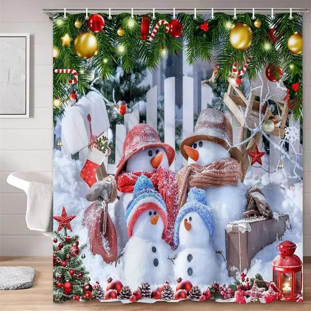 Cute Christmas Snowman Shower Curtains Xmas Tree Balls Green Pine Branches Winter Snow New Year Home Bathroom Decor Set Fabric