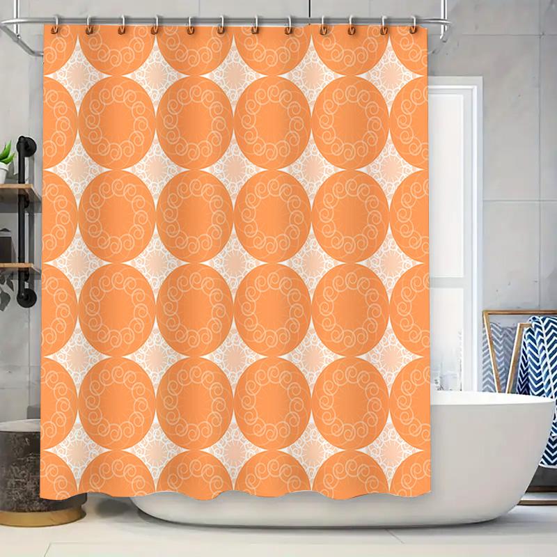 Vibrant Orange Geometric Print Shower Curtain for Bathroom Decorations 180x240cm Waterproof Fabric with Plastic Hooks Set Modern