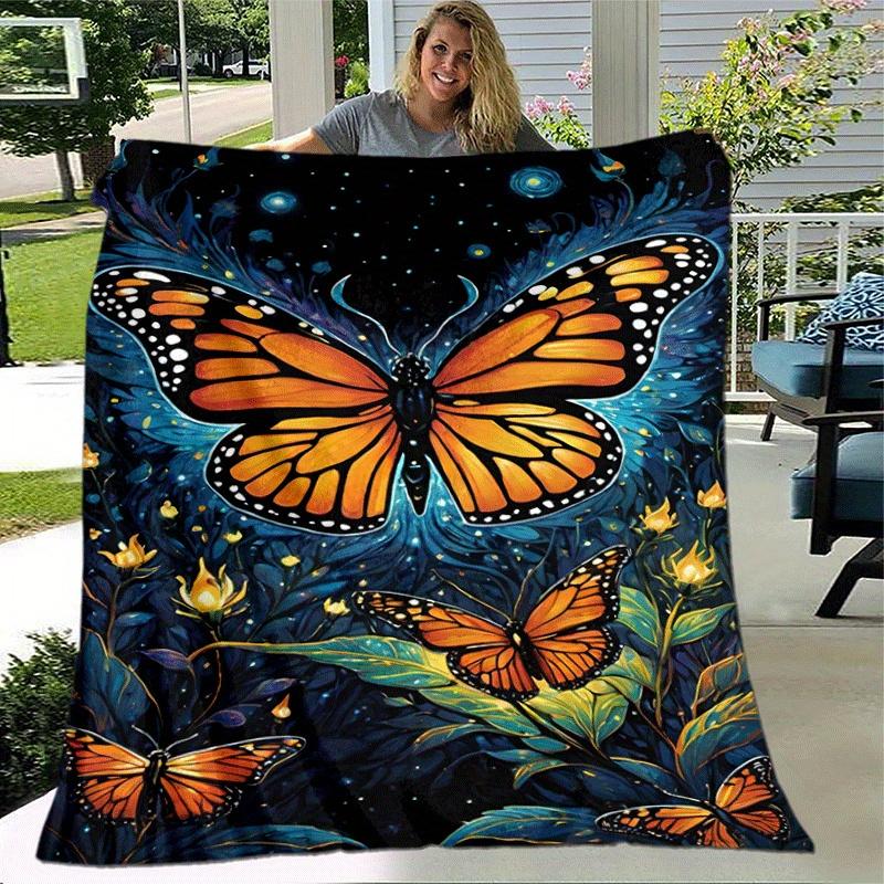 1pc Butterfly Printing Lightweight Flannel Blanket, Comfortable and Warm Blanket, for Camping Sofa Bed and Couch Office, Gift