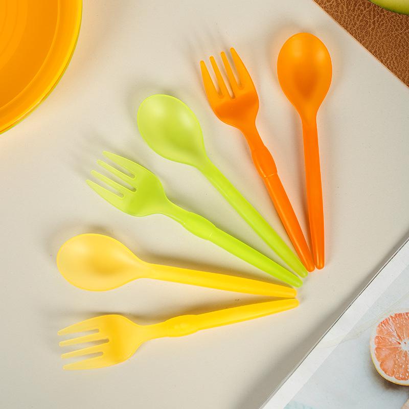 12-Piece Colorful Plastic Fork and Spoon Set for Parties and Everyday Use.