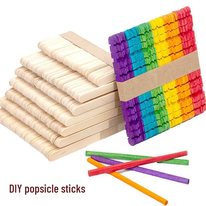 Colored Wooden Popsicle Sticks for DIY Crafts - Ideal for Kindergarten Projects and Handmade Creations.