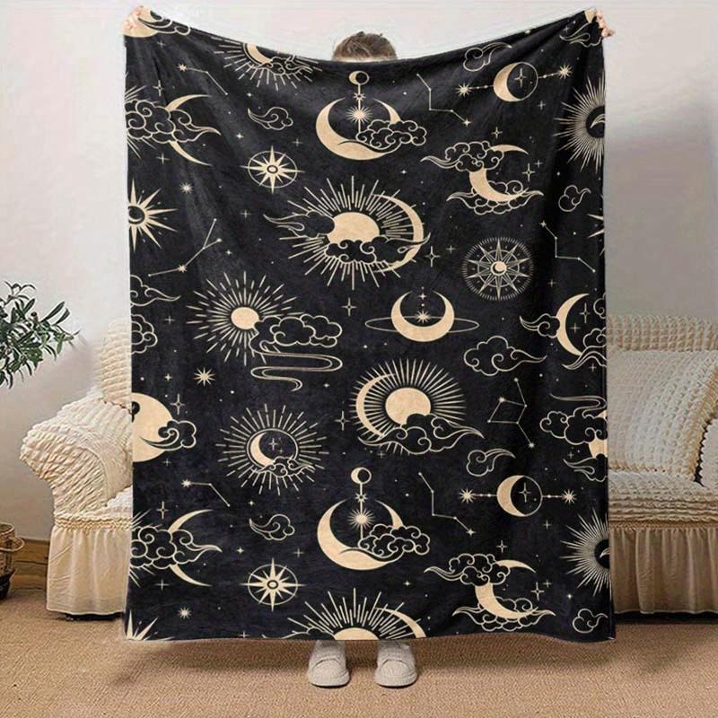 1pc Moon Printing Lightweight Flannel Blanket, Comfortable and Warm Blanket, for Camping Sofa Bed and Couch Office, Suitable for Gift Blanket