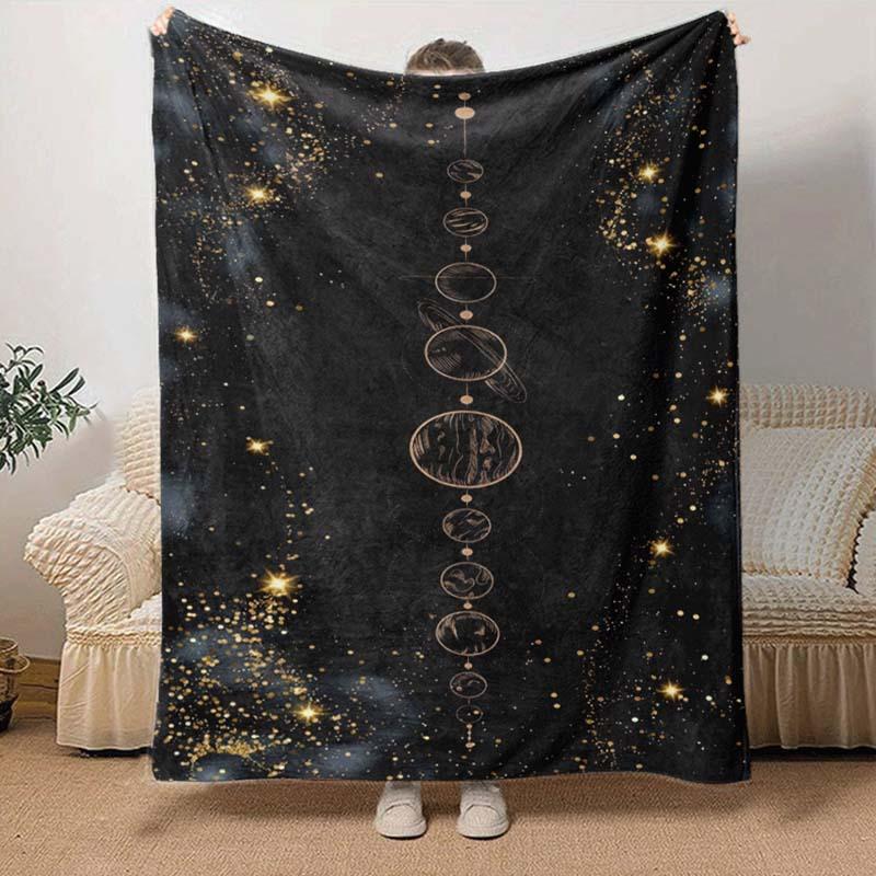 1pc Galaxy Moon Printing Lightweight Flannel Blanket, Comfortable and Warm Blanket, for Camping Sofa Bed and Couch Office, Suitable for Gift