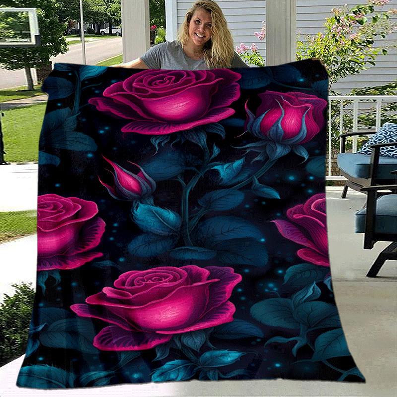 1pc Rose Printing Lightweight Flannel Blanket, Comfortable and Warm Blanket, for Camping Sofa Bed and Couch Office, Suitable for Gift Blanket