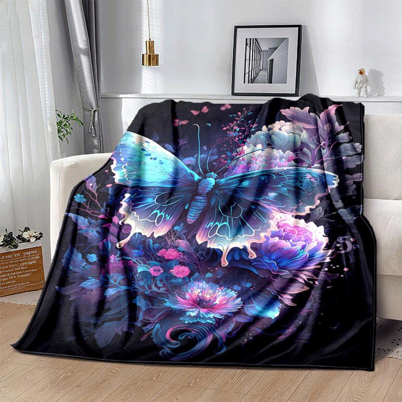 1pc Butterfly Printing Lightweight Flannel Blanket, Comfortable and Warm Blanket, for Camping Sofa Bed and Couch Office, Suitable for Gift Bl