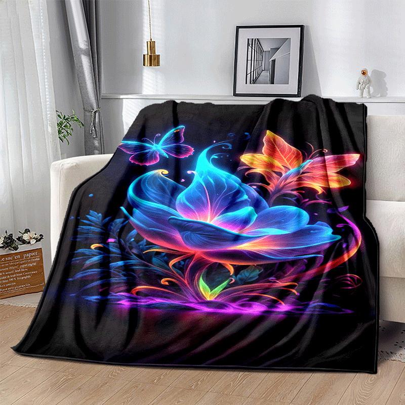 1pc Butterfly Flower Printing Lightweight Flannel Blanket, Comfortable and Warm Blanket, for Camping Sofa Bed and Couch Office, Suitable for