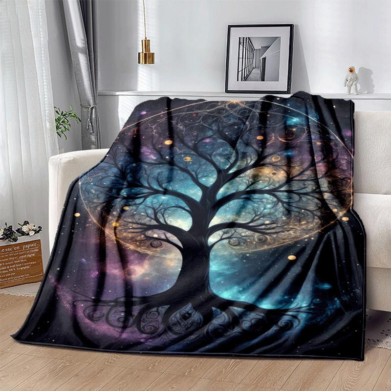 1pc Tree of Life Printing Lightweight Flannel Blanket, Comfortable and Warm Blanket, for Camping Sofa Bed and Couch Office, Suitable for Gift