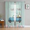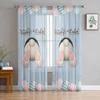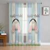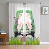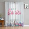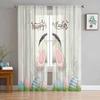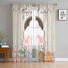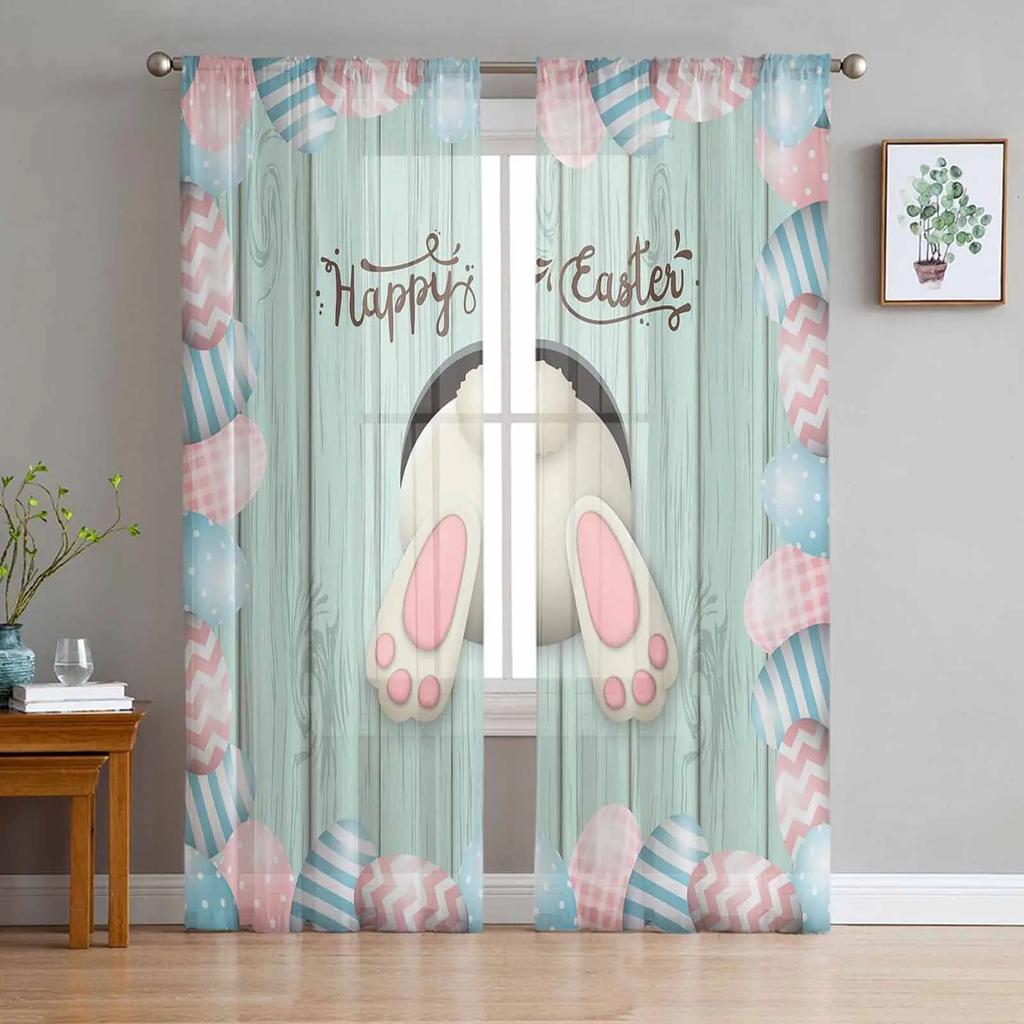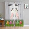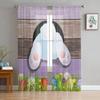Easter Bunny Tail Wood Curtain Colorful Eggs Happy Transparent Voile Curtains Living Dining Room Bedroom Drapes Light Filtering For Sleeping Area